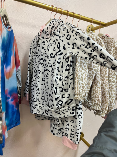 Leopard Sweatshirt with Pink Inside and Zipper Detail