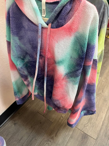 Tie-Dye Waffle Knit Bell Sleeve Hoodie